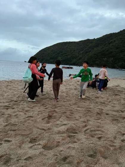 少し薄暗くなった浜辺で、猛獣狩りが始まりました。パンダ!?インドゾウ!?オオクワガタ!?レク係が中心にどんどん盛り上げてくれました。