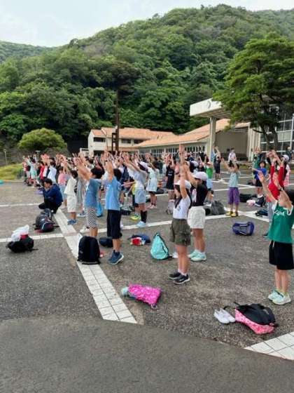 朝の集いは、一緒に泊まった他校といっしょに行いました。