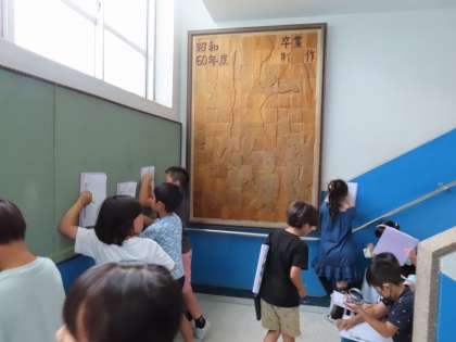 今日は、学校にある卒業記念の作品を見つけに行きました。