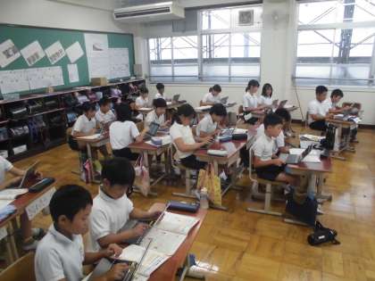 8月29日(火) 今日の一枚は、パソコンを使ってリズムを繰り返したり変化をつけたりしてリズムづくりに慣れる活動の様子です。子どもたち自身で自由にリズムを作っていく楽しさを感じている様でした。このような活動を通して、子どもたちの興味や関心の幅を広げていってほしいなと思っています。