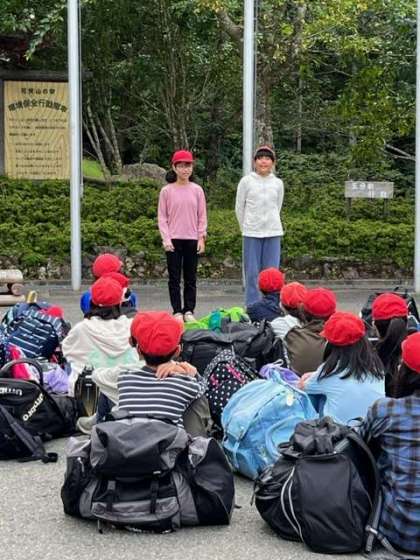 山の家に到着しました。くねくね道に少し疲れましたが、歩くうちに回復したようです。入所式では山の家の所員さんのお話を静かにしっかりきくことができました。聞く姿勢がとても良いと褒めて頂きました。みんな元気です。