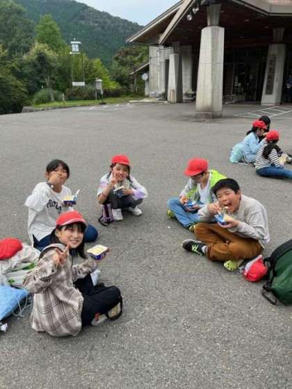 山の家に帰ってきて、山の家の先生と振り返りをしてから、本館前の広場でアイスを食べました。登山で疲れた身体に染み入る美味しさでした。