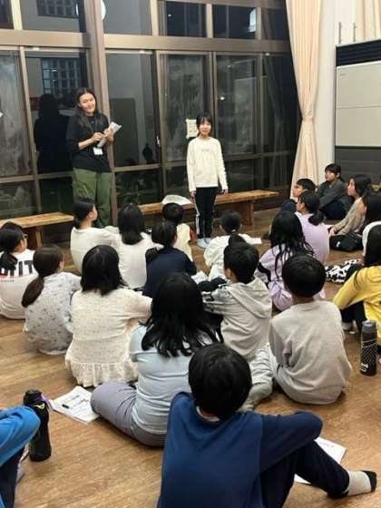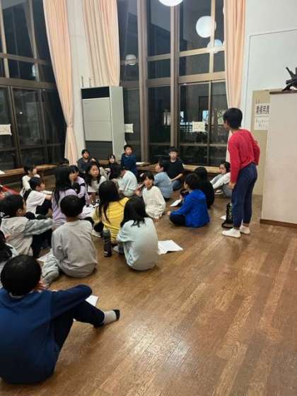 本日も1日の終わりは振り返りタイムです。山登りのしんどかったけれど、みんなの優しい声があって登り切ることができました。レク係として自分が楽しむことより人を楽しませることを頑張りました。などの感想があり、周りの人達との関わりの中で成長していくということに気づいた1日でした。