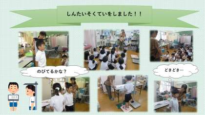 夏休み明け大きくなったなと感じられましたが、実際に測定してみると、4月と比べて身長が3cmも伸びている人がいました。