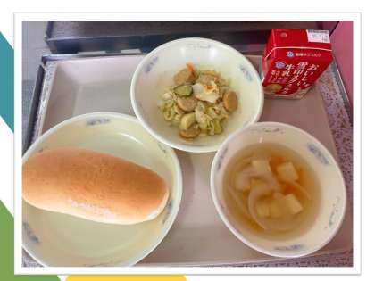ソーセージは給食ではなかなか登場しないので、子どもたちもうれしそうに食べていました。