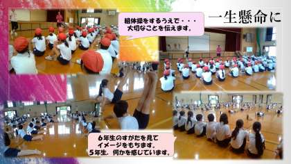 互いに信じあい,より良い組体操になるように頑張りましょう。