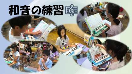 ドミソ・シファソなど,鍵盤ハーモニカで実際に音を確かめています。
