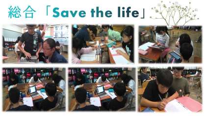 総合「Save the life」では7つのグループに分かれて、発表原稿を書き進めています。