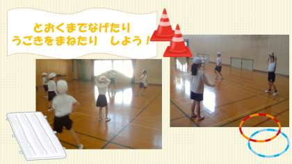 今日の体育の学習ではなげあそび・まねっこあそびをしました。