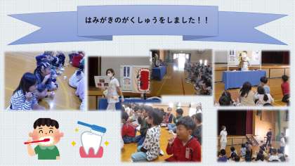 歯の健康についての話を聞いたり、実際に歯ブラシを持って自分の歯を磨いてみたりしました。