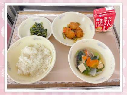「しいたけの香りがいいね〜」「こんにゃくも入ってる!」と好評な子もいれば、優しい味付けなので「ちょっと苦手…」という子も。それでもみんなよく味わって食べてくれました!