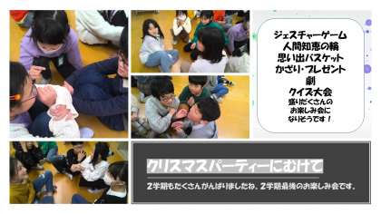 最後に2学期をふりかえるとともに、みんなで創り上げる楽しいクリスマスパーティーができたら良いなと担任たちで計画しました。