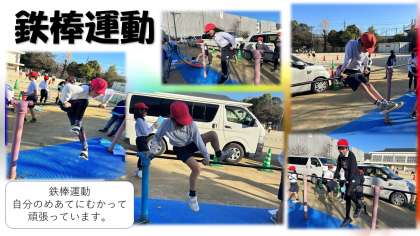 体育の授業を通して、鉄棒運動の楽しさや喜びを味わいながら、支持系の安定した基本技や発展技を身に付けることができるようにしていきたいと考えています。