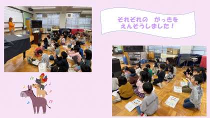 普段はけんばんハーモニカを練習していますが,あまり使わない楽器を使えると子どもたちは嬉しそうです。