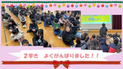 終業式を体育館で行い,校長先生のお話を聞いて2学期をふりかえりました。