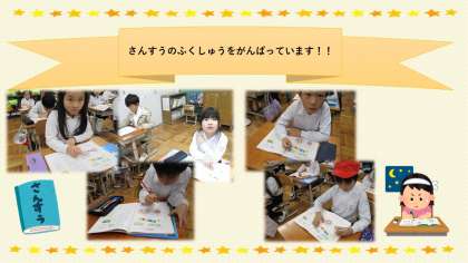 1年生の算数も残り少なくなったので、教科書やプリントでしっかりと復習していきたいです。