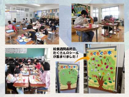 各クラスで立てた目標を達成できればシールを貼る「もぐもぐの木」にも、たくさんのシールが集まりました。