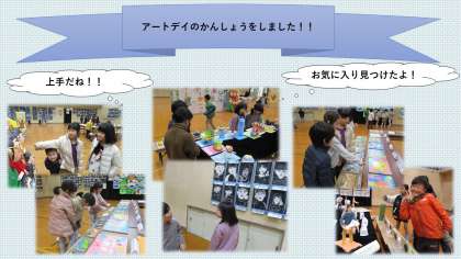 全校生の作品が展示されており、子ども達はその出来栄えに驚いていました。