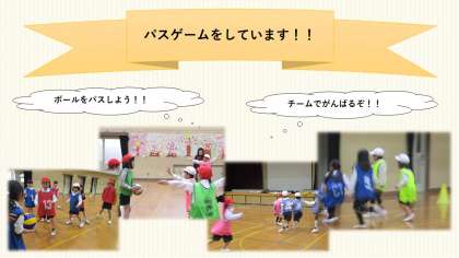 体育館ではチームでパスの練習をしたり、小さなコートでミニパスゲームをしたりしました。次は運動場でしたいですね😊