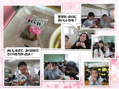 「さくらもちがもちもちで、あんこがおいしかったです。」(1年生)