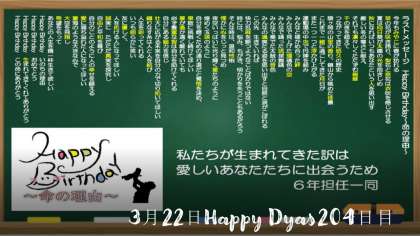 3月22日金曜日 Happy Days204日目 ラストメッセージ Happy Birthday〜命の理由〜