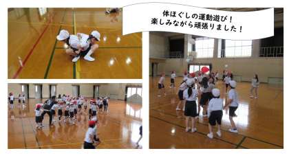 体育で体ほぐしの運動遊びの学習をしました。2人でバランスくずしをしたり、6人で風船バレーをしたり、全員でじゃんけん列車をしたりしました。