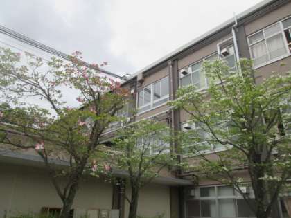 校門を入ったところのつつじ,中庭のハナミズキ,フジが咲き始めました。桜の花は散ってしまったけれど,春の深まりとともに,いろんな花が咲き始めました。まさに,春爛漫です。