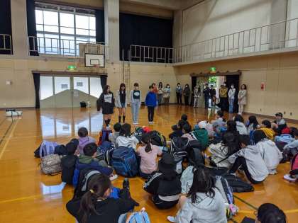 6時50分から体育館で出発式をしました。少し肌寒い感じもしますが、これからどんどん晴れてくる予報です。素敵な思い出をたくさん作っています。行ってきます!