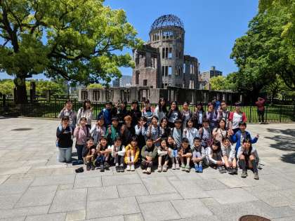 ほぼ予定通りの時刻に広島に到着しました。まずは原爆ドームの前で記念写真撮影です。