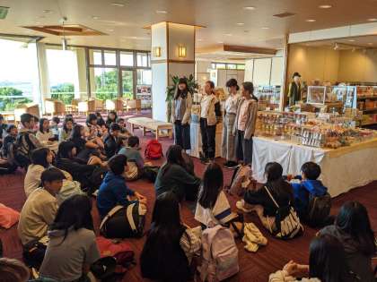 ひと晩お世話になった良寛莊の方にお礼を言って、あっという間にお別れです。景色もきれいで、ご飯も美味しくて、建物も美しくて、とても素敵な宿舎でした。ありがとうございました。