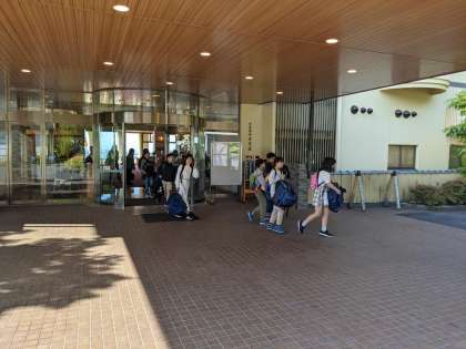 お世話になった良寛莊を後にして、これから四国水族館に向かいます。朝はちょっと眠そうだった子どもたちも、朝ご飯を食べて元気いっぱいです!