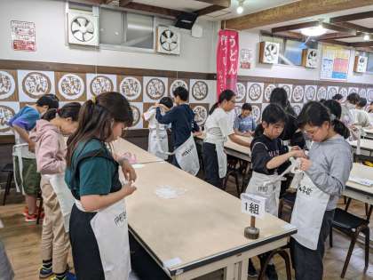 まず中野うどん学校で、うどん作り体験です。楽しみですね。
