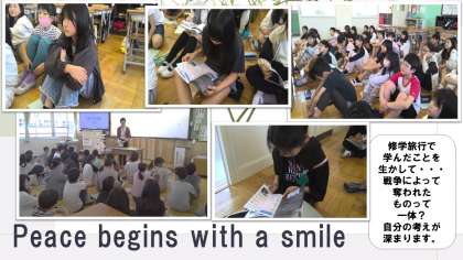修学旅行に行く前に、似たような問いと出しましたが、今日の学習では修学旅行に行く前にはなかったようなさまざまな意見が出ました。