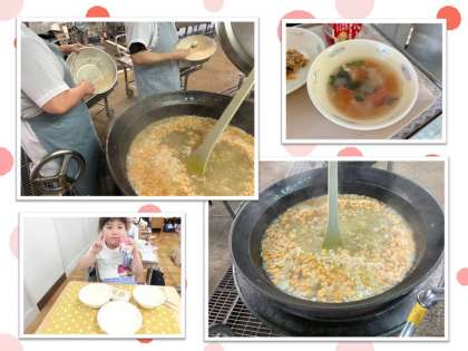 だご汁の「だご」とは「だんご」のことで、九州地方の郷土料理として食べられています。小麦粉・片栗粉・ホールトマトで作ったたねを、スプーンを使って一つずつ丸めて作りました。子どもたちは、「もちもちしてる!」「トマトも餅も苦手だけど、これは食べられた!」ととってもいい笑顔を見せてくれました。