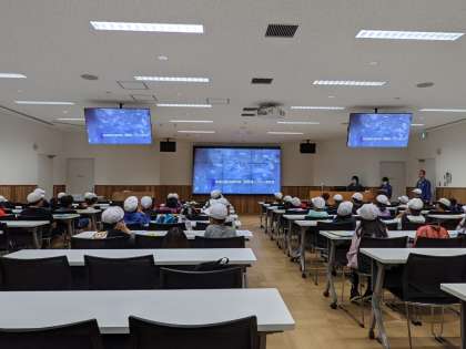 まずは、広報室に案内していただき、南部クリーンセンターについて教えていただきました。このあと、施設内を見学させていただきます。