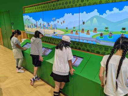早くお弁当を食べ終えた人は、足踏み発電やクイズ等の体験もさせていただきました。