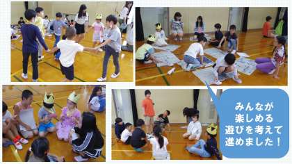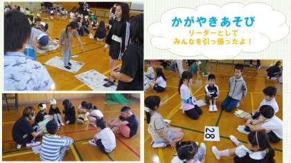 かがやきあそびでは,5年生と相談して決めた遊びを楽しんでもらうために説明や進行をしました。