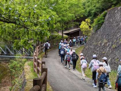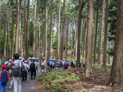 入所式を終えて、今夜のプログラムのナイトハイクの下見をしました。今は昼間で、明るいのですが、夜になったら真っ暗になります。どんな感じか、ちょっとワクワクします!