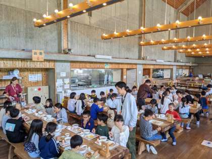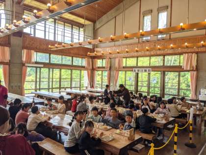 今日のメニューは、そぼろ丼、カレーコロッケ、ホタテ風フライなどなど…。とても美味しくて、たくさんの子どもたちがおかわりをしていました。しっかり食べて午後の活動にそなえます。