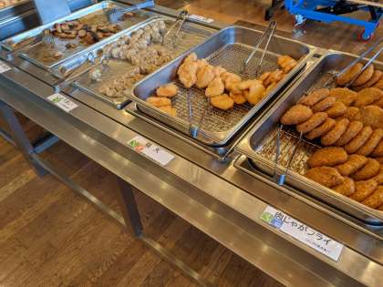スコアオリエンテーリングのあと、お風呂をすませて、6時から夕食です。肉じゃがフライ、鶏天、シュウマイ、ブリの照り焼き…。おいしくいただきました!