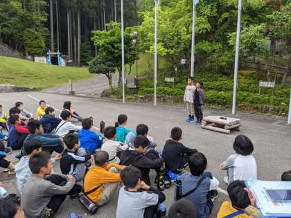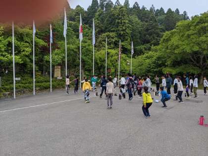 7時から本館前で朝の集いをしました。ひんやりした空気が、まだちょっと眠い体をシャキッとさせてくれました。