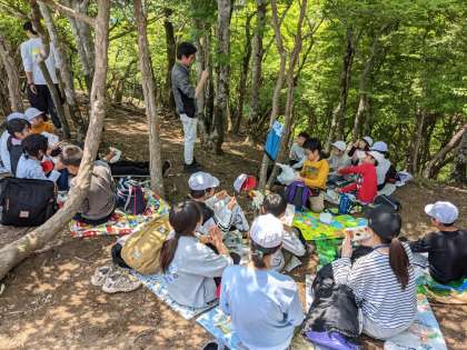 山頂で食べるお弁当の味は格別です。登っているときは汗だくでしたが、風がとても心地よいです。