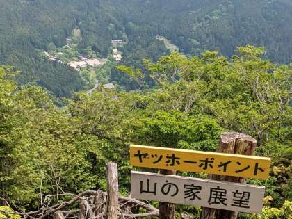 下山途中に、山の家が見えるポイントがあります。みんなで山の家に向かってみんなで「ヤッホー」とさけびました。山の家からも「ヤッホー」が返ってきて、子どもたちは大喜びでした。