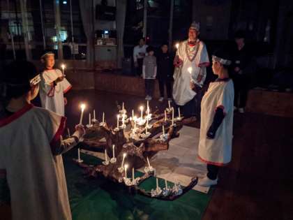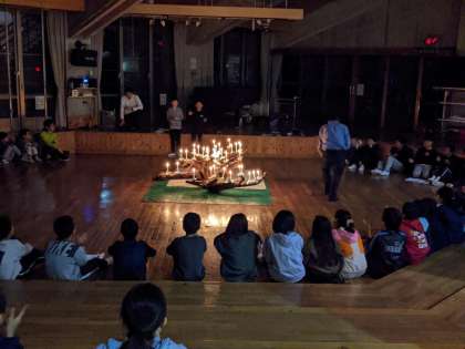 火の神様から火をいただいて、いよいよキャンドルファイヤーのスタートです。ろうそくの炎がみんなを優しく照らします。