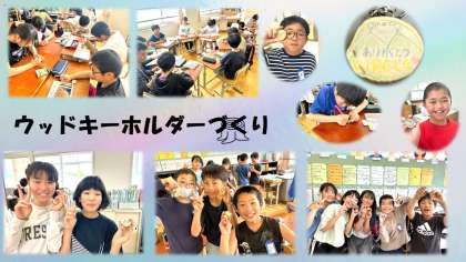 図画工作科の学習では、花背山の家から持ち帰った「ウッドキーホルダー」に絵を描きました。