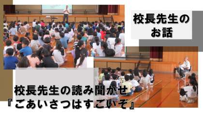 校長先生のお話では、「ごあいさつはすごいぞ」の絵本の読み聞かせを通して、自分からするあいさつの大切さについて考えました。