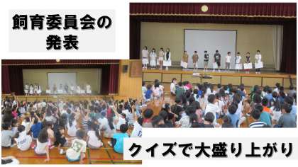委員会の発表では、飼育委員会が学校内で飼育している動物についてのクイズをしてくれました。