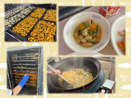 子どもたちからは、「かぼちゃが甘くておいしい〜!」「僕、一番好きな給食これになったわ」と好評で、ふだんなすに苦戦している子も、「今日は全部食べれたよ!」と誇らしげに教えてくれました(^^)