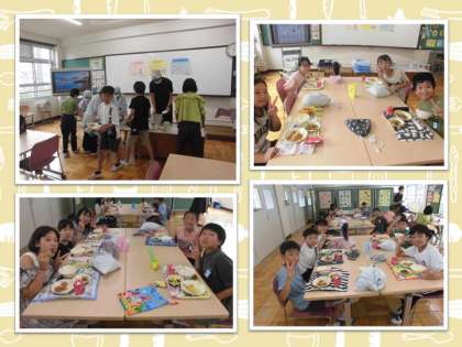 「今日のなつやさいのやきびたしの、なつやさいがおいしかったです。なすとかぼちゃがやわらかかったし、オクラがしゃきしゃきしていました。ひらてんとこんにゃくのにつけがごはんとあいました。」(3年)