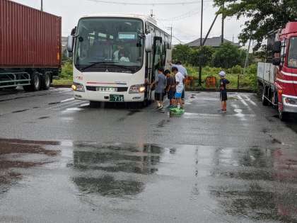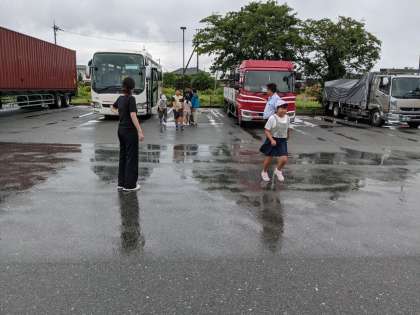 安曇川の道の駅でいったんトイレ休憩です。残念ながら、ここは雨です。若狭湾少年自然の家の到着は11時頃の予定です。